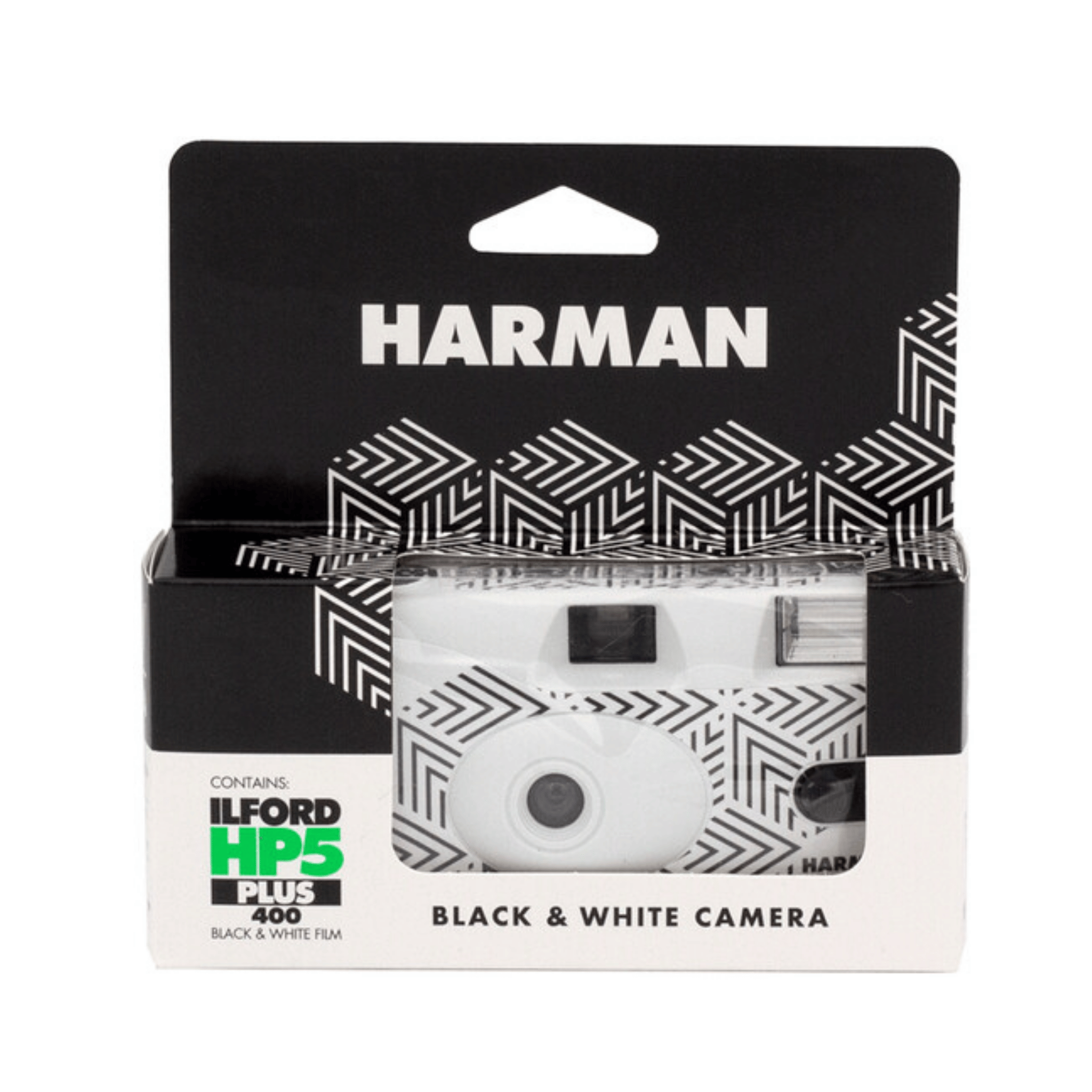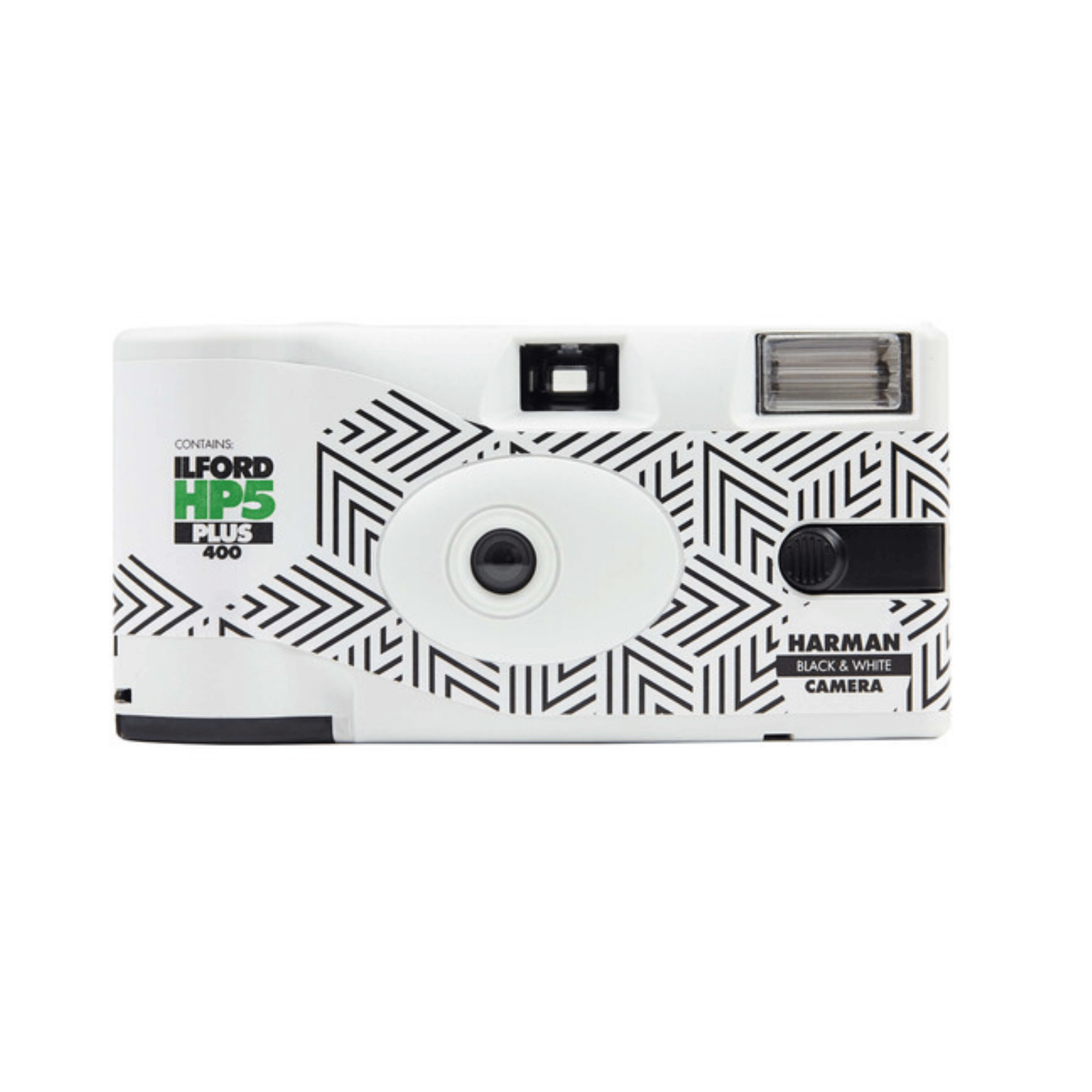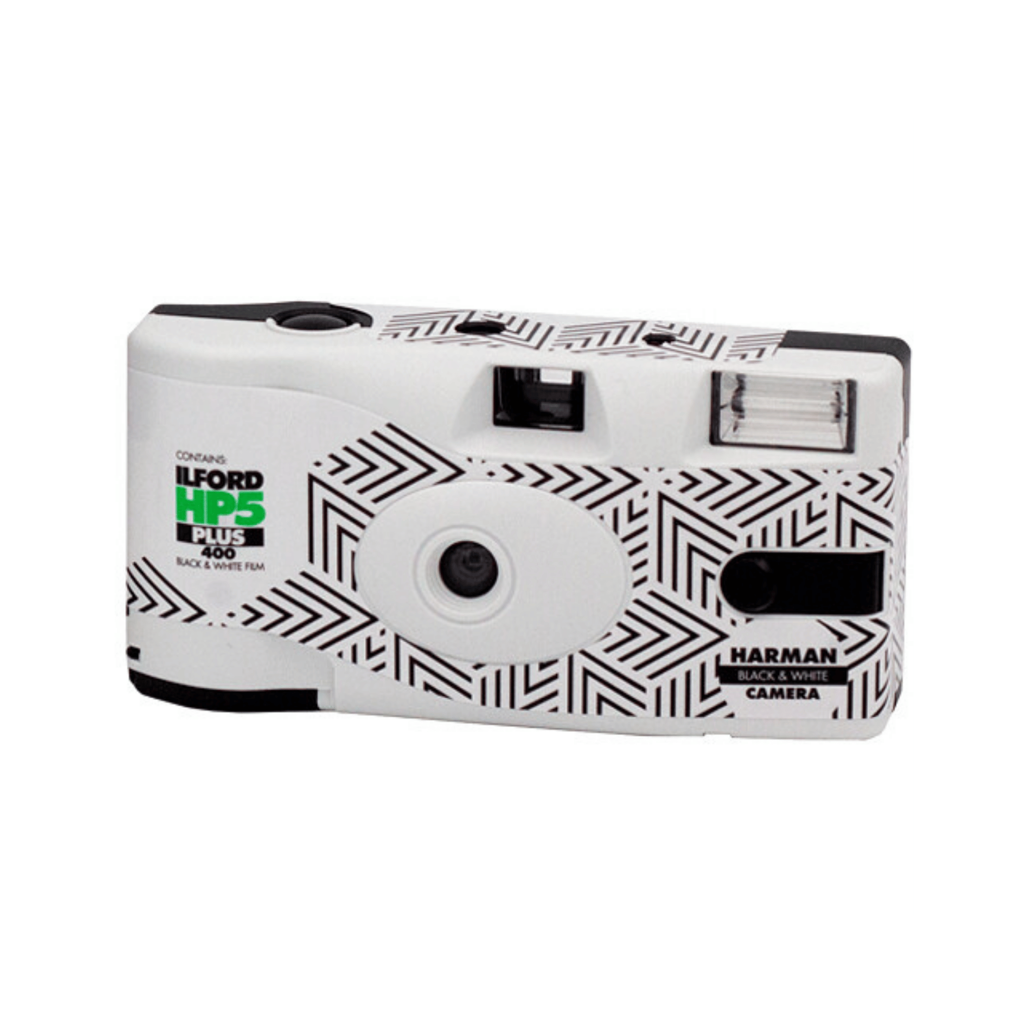 The pre-loaded Ilford HP5 Plus 400 Professional Black & White Film is a high speed, fine grain, medium contrast black and white film making it an excellent choice in this one time use camera.